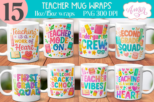 BUNDLE Cute Teacher mug Wraps PNG, cute school mugs template