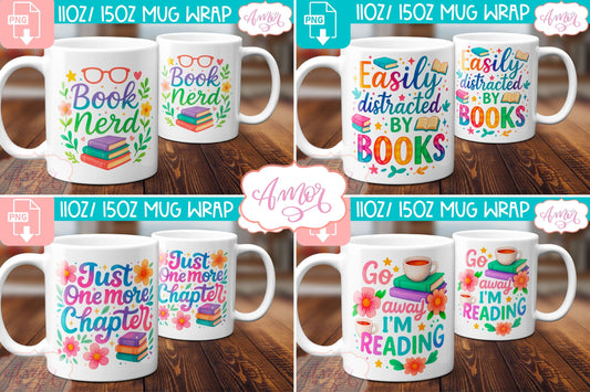 Book lover mug wrap sublimation PNG BUNDLE, book nerd mugs