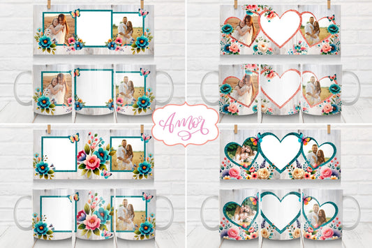 Floral photo mug templates PNG BUNDLE, customizable mug png