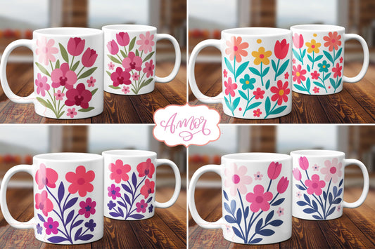 Bundle Spring floral mug wraps sublimation, Colorful mug PNG
