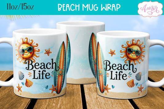 Beach Life Mug Wrap for Sublimation | Summer mug wrap PNG