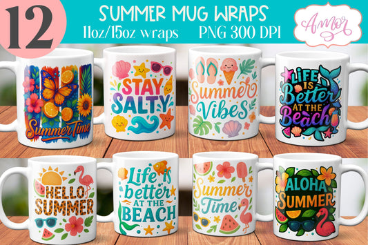 Summer wrap PNG sublimation BUNDLE, Beach mugs bundle PNG